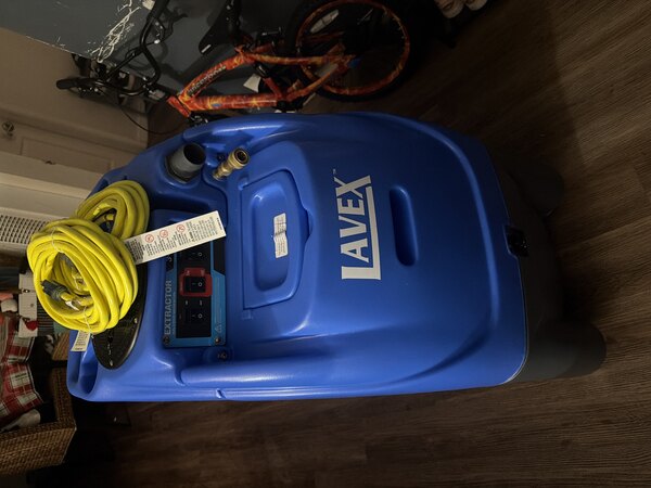This extractor features a 500 PSI pump to deliver extracting solution into the carpet, while its adjustable water pressure allows you to clean a variety of carpet types. Its powerful dual 3-stage motors boast a water lift of up to 200", removing dirt and stains with great effectiveness and promoting quicker drying times. With an innovative cooling design, this unit uses the vacuums cooling fans to pull cool, outside air over the motors, reducing motor temperature and preventing overheating. Better yet, its controls are at waist height to minimize bending and stooping, ensuring user comfort. The controls are also recessed in the machine to protect them during use, transport, or when in storage! It comes equipped with (2) 25' 12/3 gauge safety power cords and it requires a 120V electrical connection for use. This durable and effective Lavex spot extractor is sure to help keep your carpets and rugs looking their best!