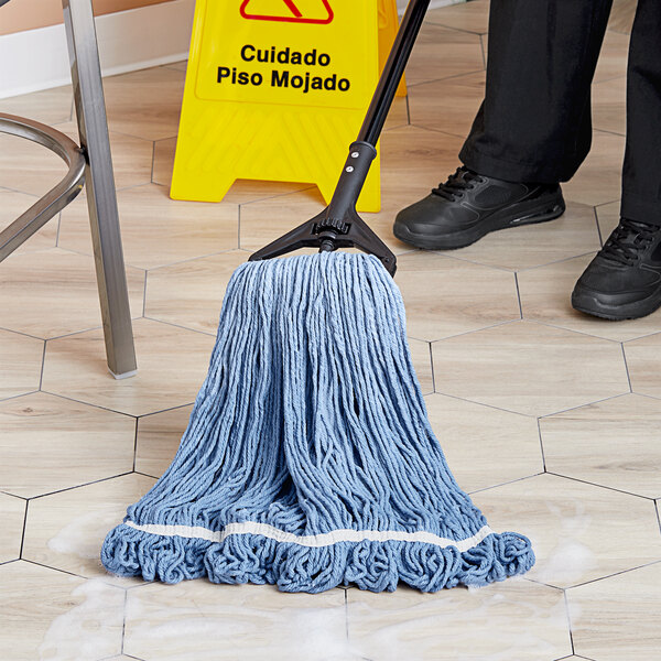 This mop head's blue color makes it easy to implement a color-coded cleaning system for the safety of your guests and employees. Use this mop head to quickly and easily absorb cleaning liquids or messes in restaurants, schools, and offices.
