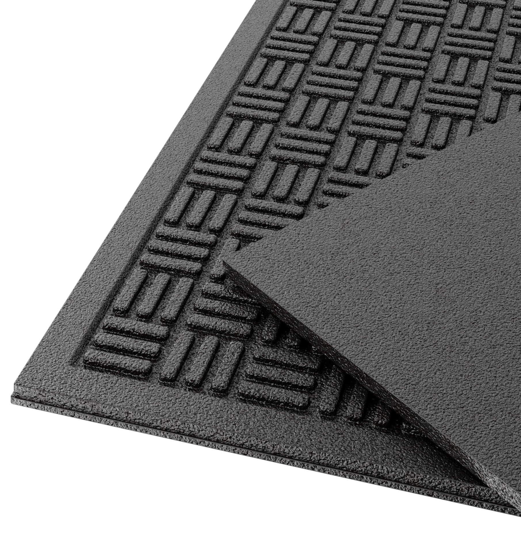 This mat features a dependable 90% recycled rubber construction that's weather-resistant to withstand seasonal changes and maintain its appearance over time. It also resists water and wear while providing excellent anti-slip traction. Plus, its molded parquet rib pattern provides a tough scraping surface to remove dirt and soil from shoes.