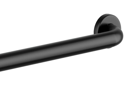 This is a standard ada compliant grab bar that is sturdy and can fit into any bathroom design. It also has a grit finish so that it's not slippery