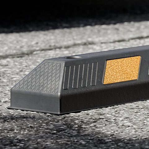 This parking stop is made of durable, low-maintenance rubber and features yellow reflective striping for excellent visibility in low-light conditions. Plus, it withstands temperatures from -49 to 140 degrees Fahrenheit.