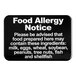 Lavex 9" x 6" Black and White "Food Allergy Notice" Sign