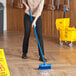 Lavex Flo-Thru 10" Floor / Vehicle Scrub Brush with Blue 60" Metal Handle
