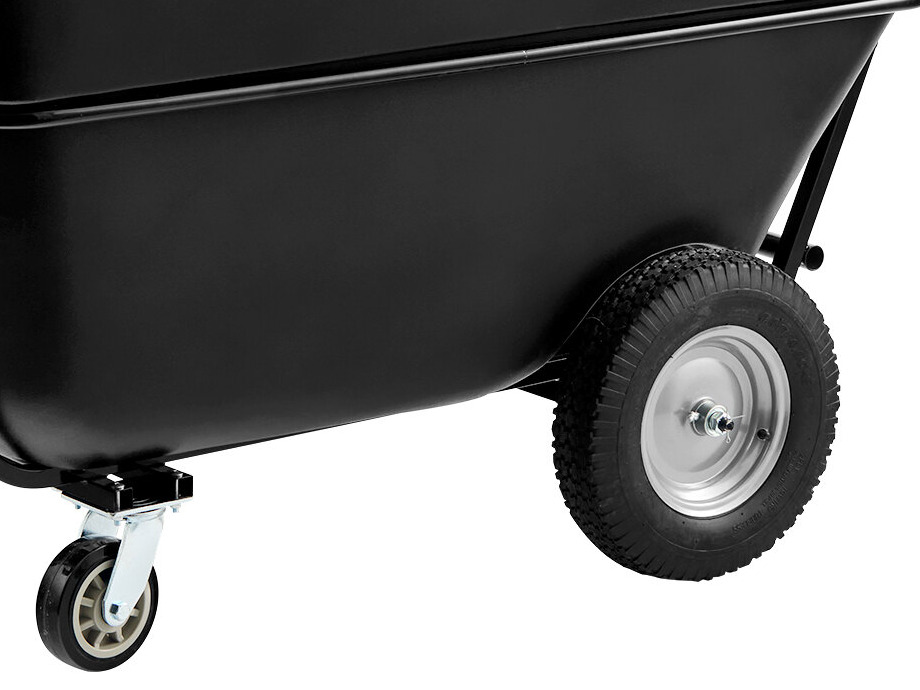 Ideal for a variety of commercial and industrial environments, use this tilt truck to transport different kinds of waste, industrial materials, and recycling. Designed to support your business's optimal efficiency, it features a tow-bar that allows multiple tilt trucks to be connected for simultaneous hauling. This tilt truck is made with rotational molding technology, which reduces stress during the molding cycle to result in a more impact-resistant design and superior durability. Its durable rim offers a comfortable grip during use and promotes the truck's longer life by reinforcing an area susceptible to faster wear and tear.
