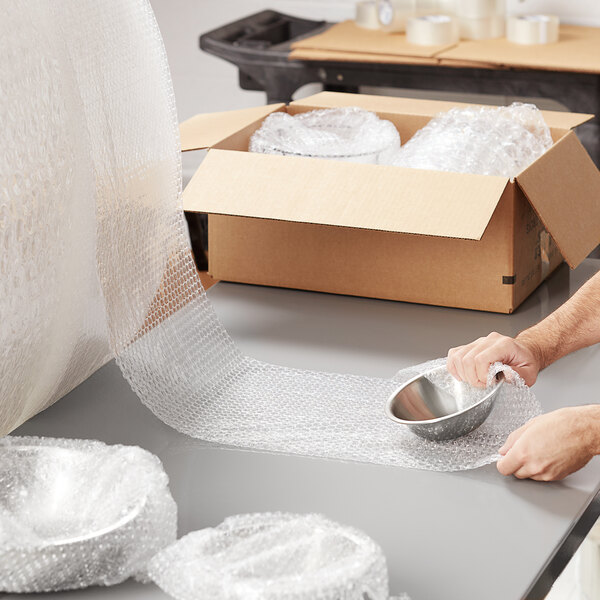 Use this Lavex 12" x 750' small bubble roll to ensure your products are protected during transport! This convenient bubble roll's 3/16" bubbles act as a cushioning void fill, helping to create confidence during shipping and storage. This item is perforated every 12 inches for easy tearing.