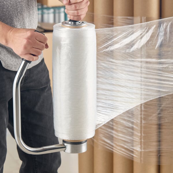 Trust this Lavex innovative 15" x 1476' 30 gauge pre-stretched pallet wrap / stretch film to safely and securely wrap your product.