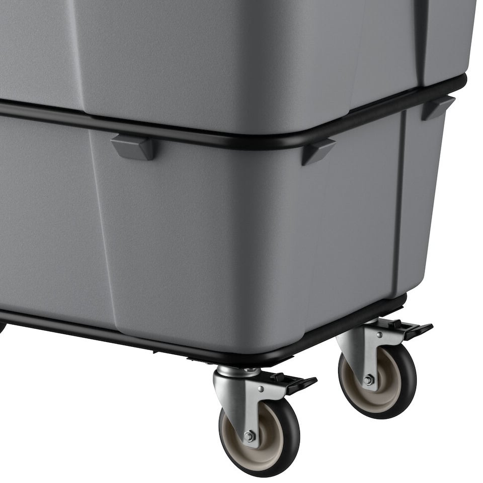 This cube truck features 2 rigid and 2 swivel 5" x 1 1/4" casters that allow for easy maneuverability from one area of your facility to another, making hauling tasks quick and easy for your staff.
