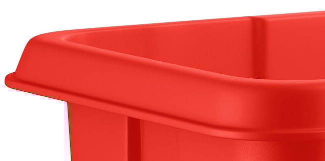 The durable rim of this cube truck offers a comfortable grip during use and promotes the truck's longer life by reinforcing an area susceptible to faster wear and tear.