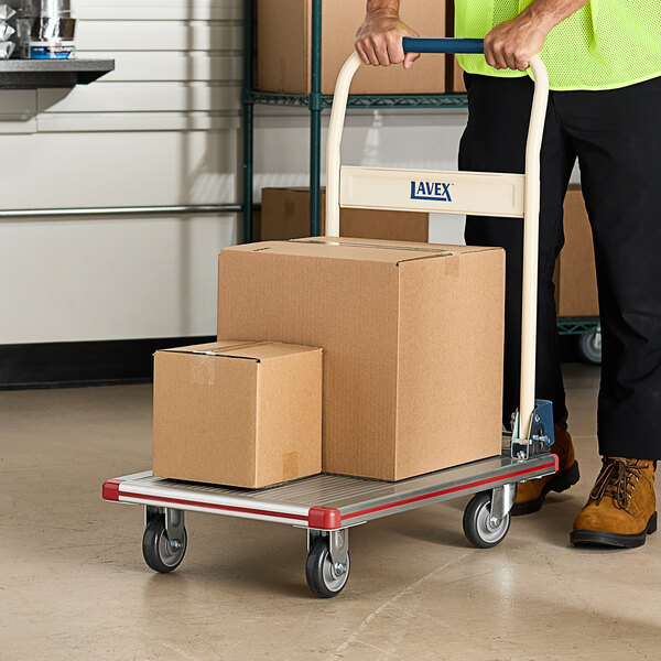Provide your employees with an efficient way to move large loads with this Lavex 19" x 29" aluminum platform truck!