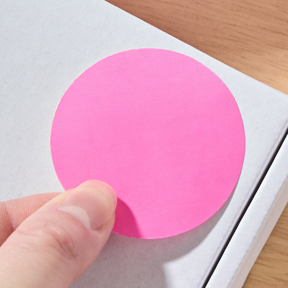 This roll of round labels makes it easy to create a color-coded system to help simplify inventory tasks and procedures. Thanks to the pink background, you can create a process that all of your employees can follow. Perfect for pallets, boxes, or shelves, these labels provide easy identification in a variety of settings.