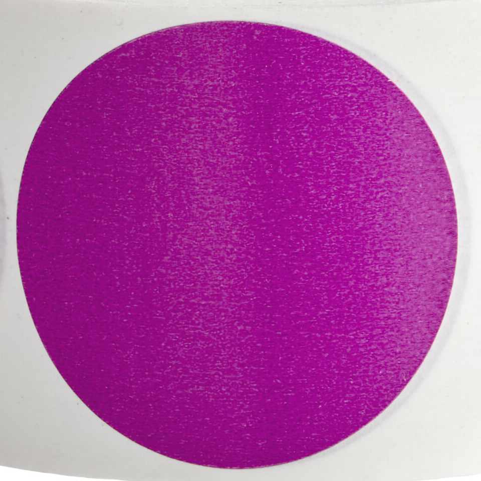This roll of round labels makes it easy to create a color-coded system to help simplify inventory tasks and procedures. Thanks to the purple background, you can create a process that all of your employees can follow. Perfect for pallets, boxes, or shelves, these labels provide easy identification in a variety of settings.
