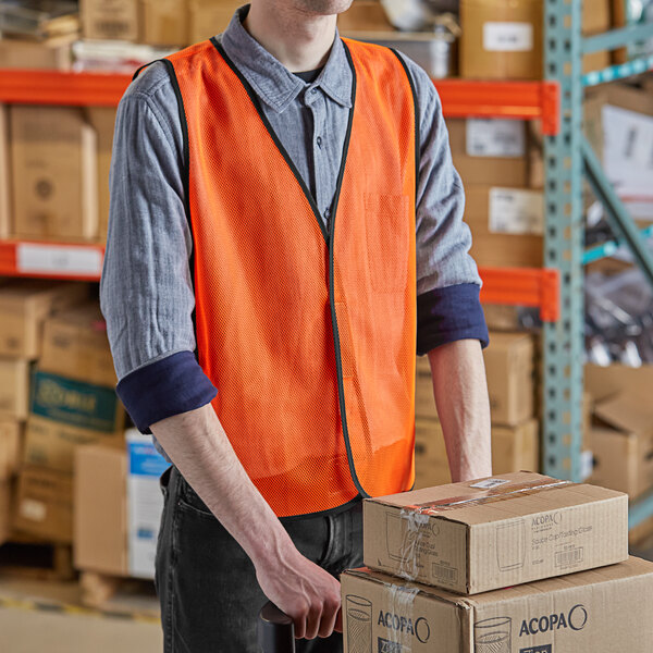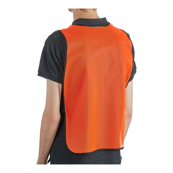 Perfect for general use in receiving areas, grocery stores, and parking lots, this bright orange, high-visibility mesh safety vest ensures a higher level of safety so you can help protect your employees. It is a must have for anyone working in parking lots or around heavy machinery.