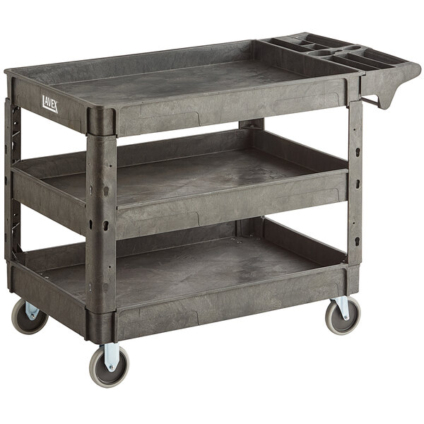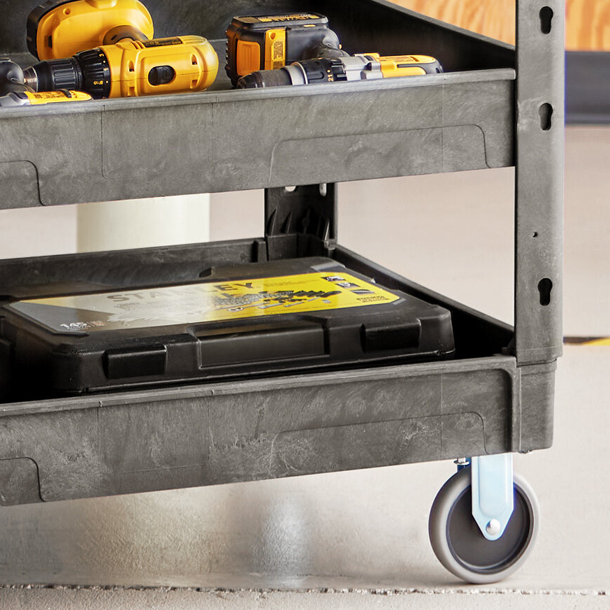 Thanks to the cart's 3 spacious shelves, this item can also accommodate up to 550 lb. of evenly distributed weight. Each shelf even offers a raised lip to help prevent items from sliding off during transport. Plus, it includes multiple built-in tool compartments that allow you to effectively organize and keep small parts close at hand.