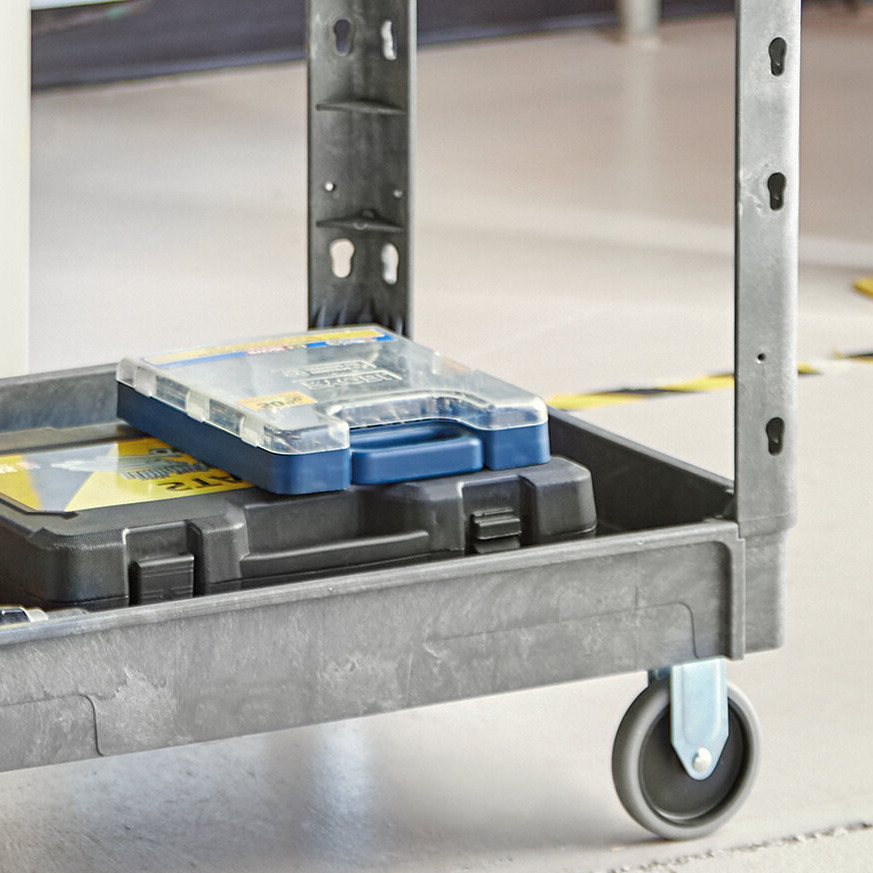 Thanks to the cart's 2 spacious shelves, this item can also accommodate up to 550 lb. of evenly distributed weight. Each shelf even offers a raised lip to help prevent items from sliding off during transport. Plus, it includes multiple built-in tool compartments that allow you to effectively organize and keep small parts close at hand.