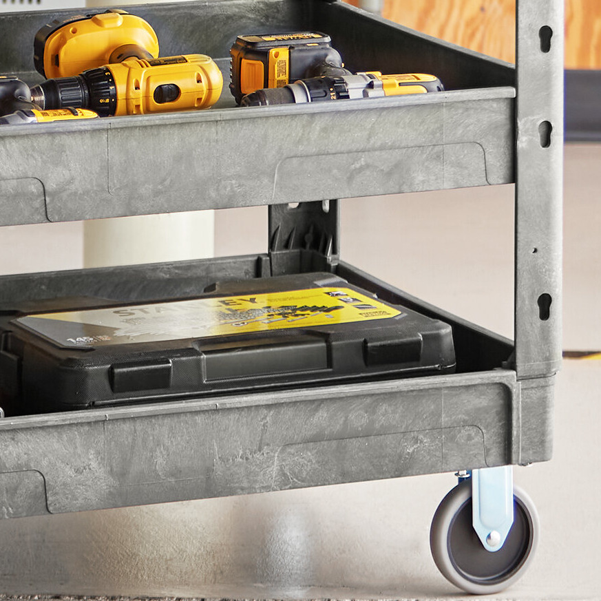 Thanks to the cart's 3 spacious shelves, this item can also accommodate up to 550 lb. of evenly distributed weight. Each shelf even offers a raised lip to help prevent items from sliding off during transport. Plus, it includes multiple built-in tool compartments that allow you to effectively organize and keep small parts close at hand.