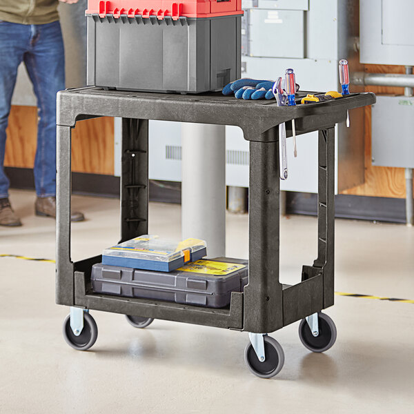 Thanks to the cart's 3 spacious shelves, this item can also accommodate up to 550 lb. of evenly distributed weight. Each shelf even offers a raised lip to help prevent items from sliding off during transport. Plus, it includes multiple built-in tool compartments that allow you to effectively organize and keep small parts close at hand.