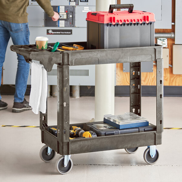 Thanks to the cart's 2 spacious shelves, this item can also accommodate up to 550 lb. of evenly distributed weight. Each shelf even offers a raised lip to help prevent items from sliding off during transport. Plus, it includes multiple built-in tool compartments that allow you to effectively organize and keep small parts close at hand.