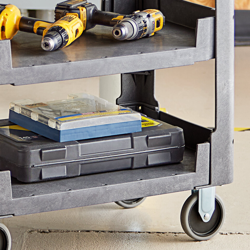 Thanks to the cart's 3 spacious shelves, this item can also accommodate up to 550 lb. of evenly distributed weight. Each shelf even offers a raised lip to help prevent items from sliding off during transport. Plus, it includes multiple built-in tool compartments that allow you to effectively organize and keep small parts close at hand.