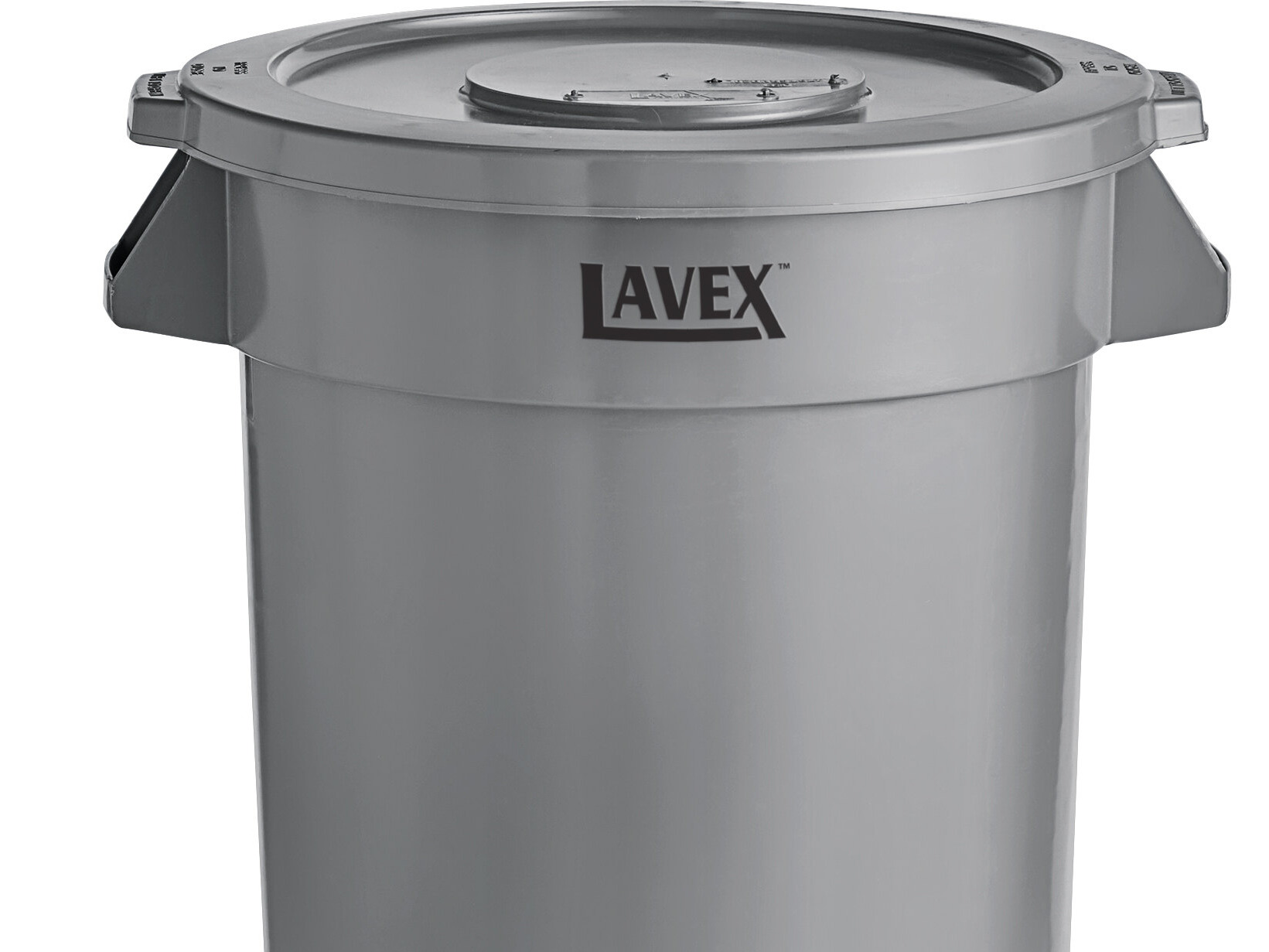 This Lavex gray trash can is essential for a variety of tasks, including proper trash storage and removal. The gray coloring helps this trash can stand out and it's great for creating a color-coded system in your kitchen to prevent cross-contamination. Regardless of whether you need a recycling can, trash can, or large bulk storage container, this can is sure to do the job! This can boasts NSF standard 2, meaning it meets the minimum food protection and sanitation requirements for materials, design, fabrication, construction, and performance of food handling and processing equipment in bakeries, cafeterias, kitchens, and pantry units. The twist-on dolly style has a 250 lb. weight limit and is simple to use. It also extends the overall life of the can by not dragging it on the ground.
