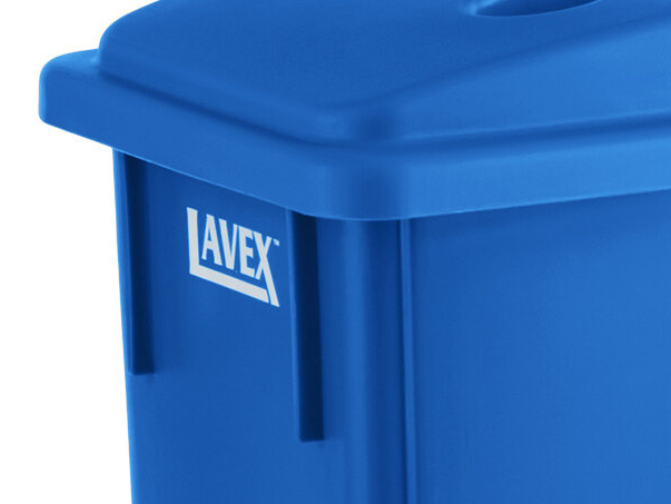 These Lavex recycling cans are designed to withstand the rigors of any fast paced environment. To make lifting and handling easier, they also feature integrated rim and base handles so you can confidently transport your can from one area to another without fear of it breaking or bending, even when transporting heavy loads.