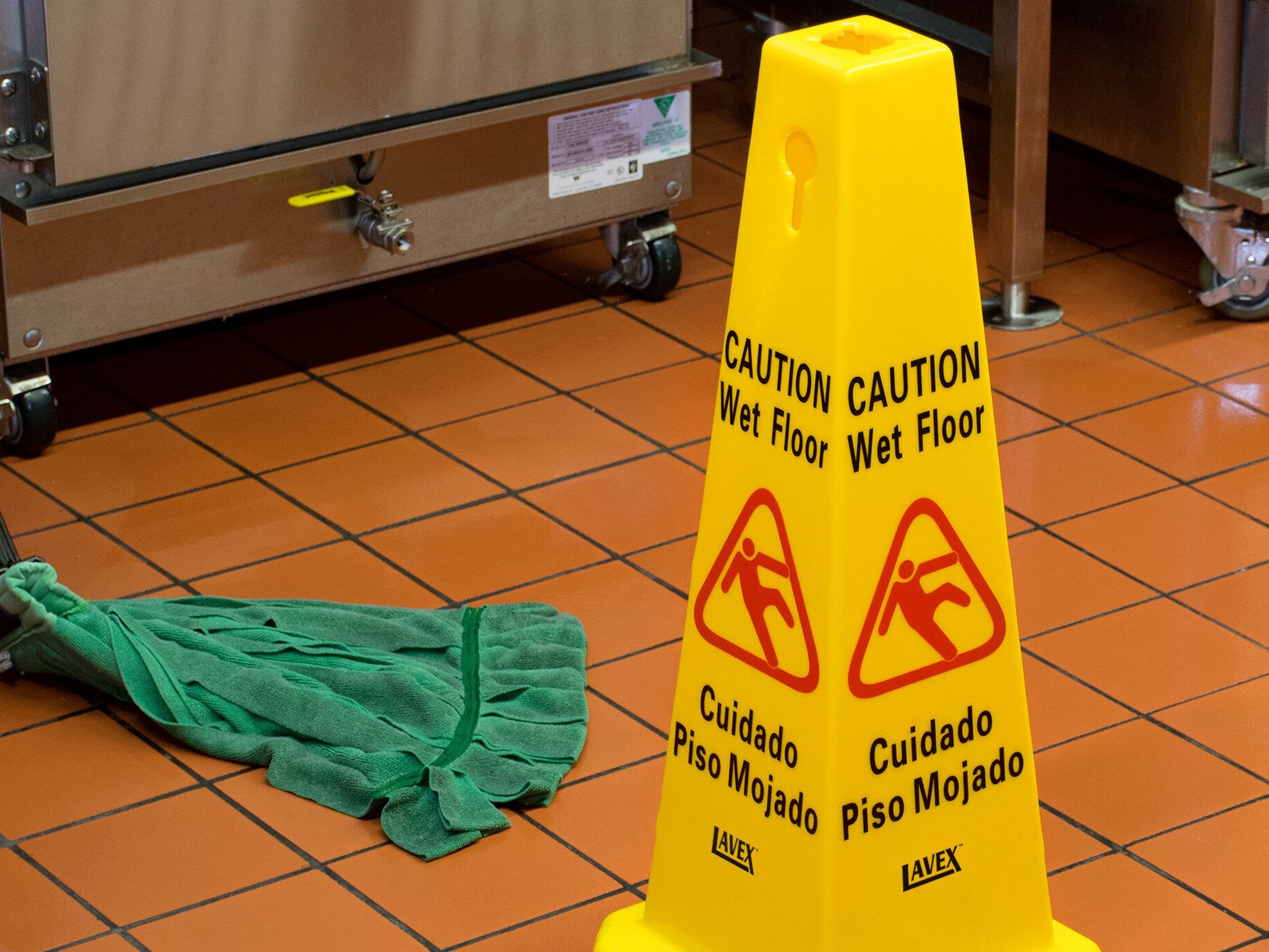 - Printed with "CAUTION Wet Floor" in English and Spanish