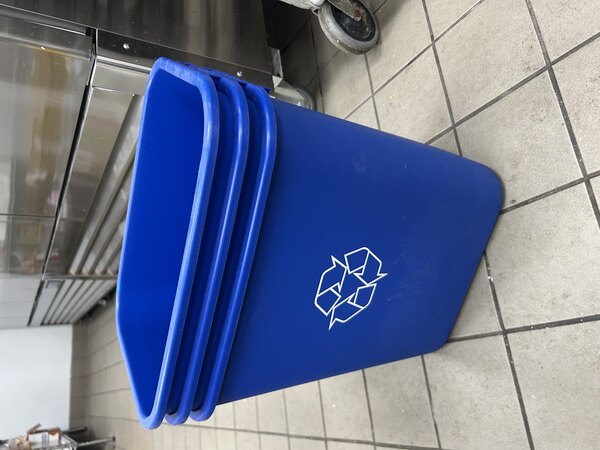 This was purchased so guests would have no doubt where the recycling bin was. The clearly indicated logo and color ensure its visibility and us are properly indicated. Solid stable product