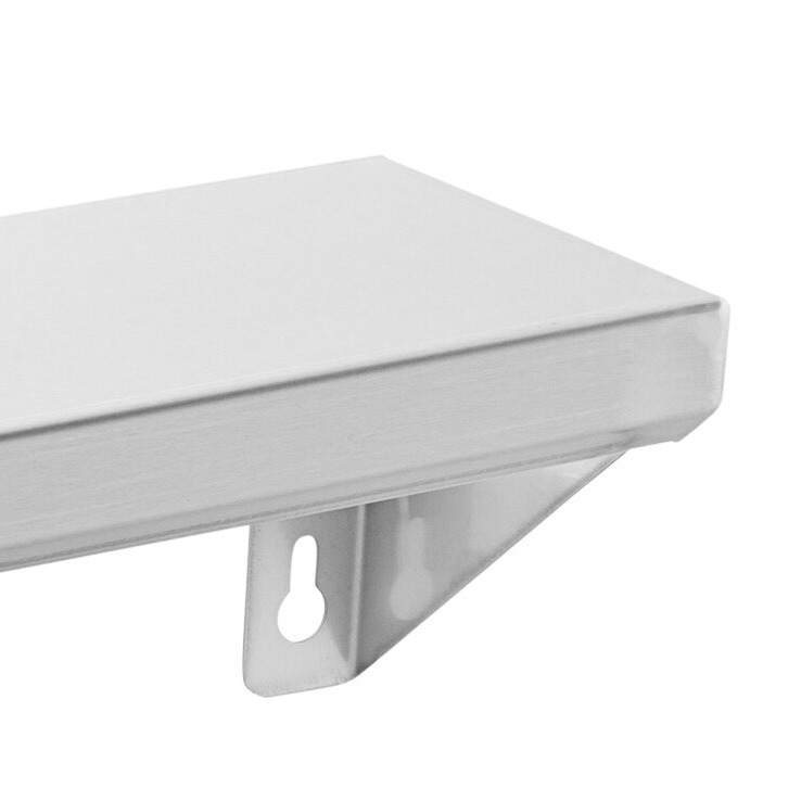 I know this is Janitor Shelves but we use this for our staff drinks and it works great. The stainless steel really leaves it a clean look. It was really easy to mount up. I will say water marks do get left on these from cups but cleaner can wipe it up. I would definitely recommend these for a kitchen or use where you put little things on it.