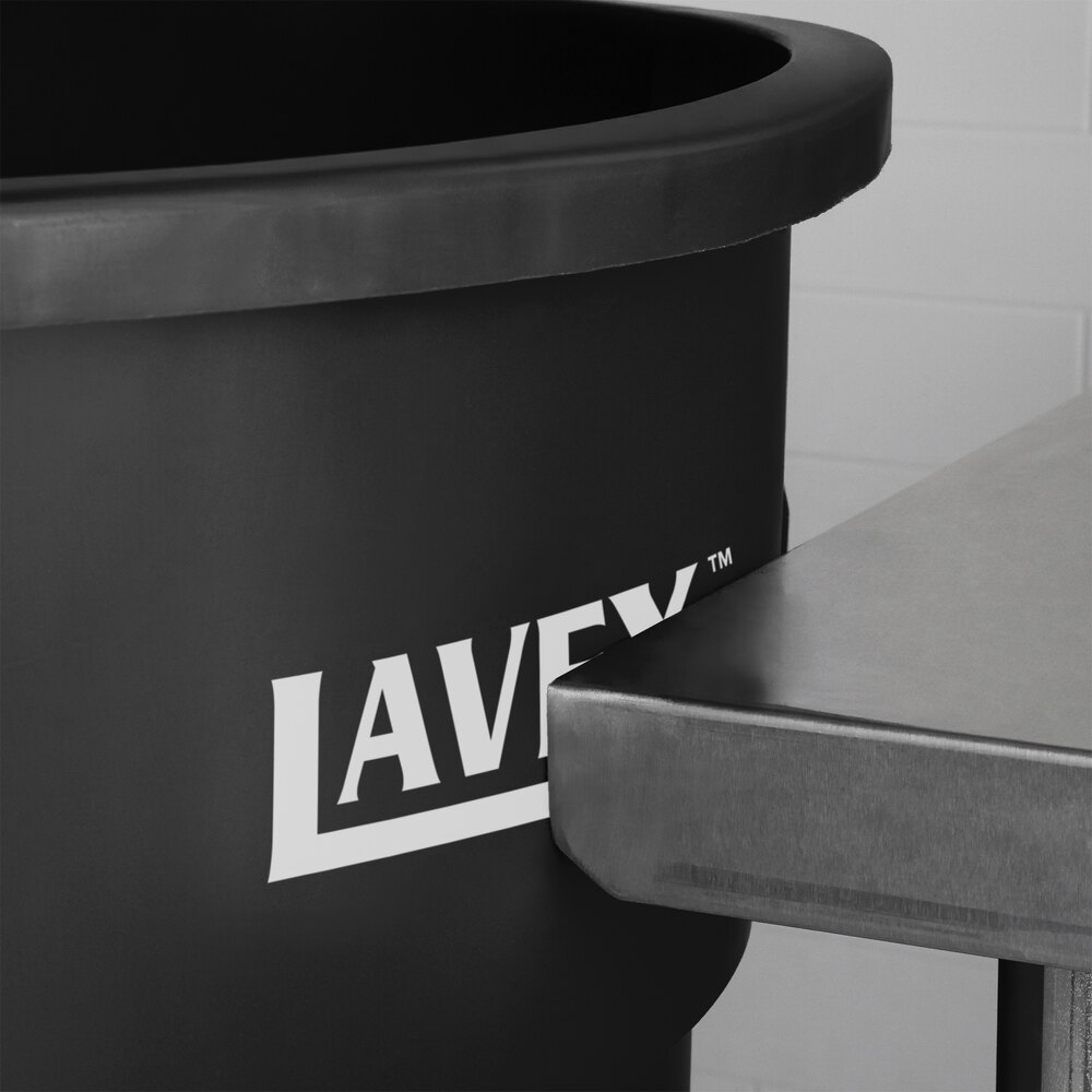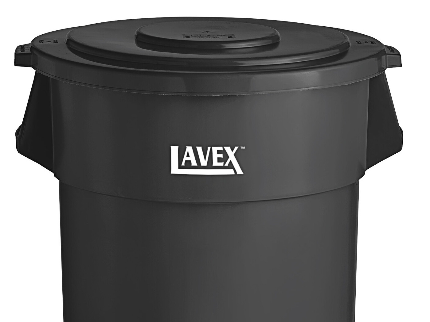 This Lavex black trash can is essential for a variety of tasks, including proper trash storage and removal. The black coloring helps this trash can stand out and it's great for creating a color-coded system in your kitchen to prevent cross-contamination. Regardless of whether you need a recycling can, trash can, or large bulk storage container, this can is sure to do the job! This can boasts NSF standard 21, meaning it meets the minimum sanitation requirements for materials, design, and construction of new thermoplastic refuse containers intended for indoor and outdoor refuse storage. The twist-on dolly style has a 250 lb. weight limit and is simple to use. It also extends the overall life of the can by not dragging it on the ground.