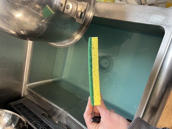 As a chef in a high-volume restaurant, I recently used the Lavex 6" x 3 1/2" x 3/4" Yellow Cellulose Sponge / Green Heavy-Duty Scouring Pad Combo 6/Pack ,to clean Vigor SS1 Series pots and pans, and it’s a solid performer for demanding kitchen tasks. The dual-sided design features an absorbent cellulose sponge, made from wood pulp, that soaks up water and soap efficiently, making quick work of countertop spills and dishwashing. The green heavy-duty scouring pad tackled stubborn grease and baked-on residue from my 12 Qt. Stock Pot with ease, without scratching surfaces.