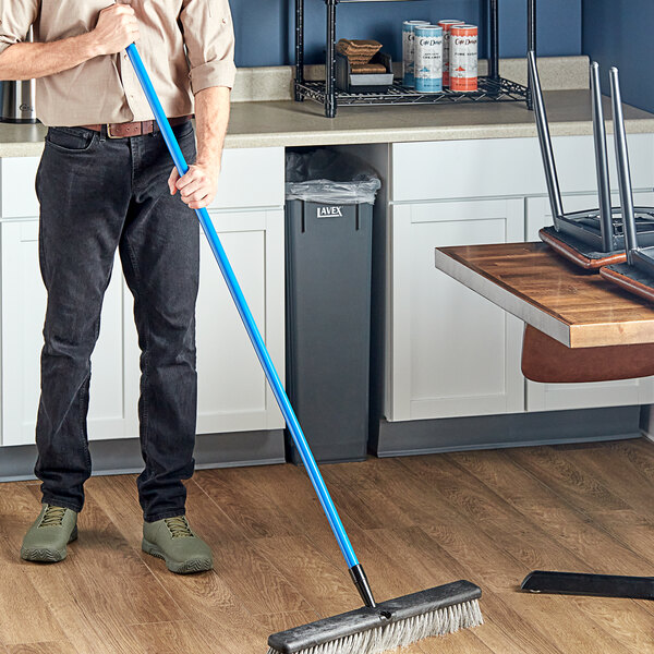 Maintain a clean facility with the help of this Lavex 60" blue threaded fiberglass broom / squeegee handle.