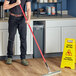 do not buy, i broom a small cafe and i apply a medium amount of pressure and the handle snapped at the bottom part where it threads into the broom head. The second one i bought that i have to now use is now coming loose in the same area. i will not buy anymore and do recommend anyone else to do so either.