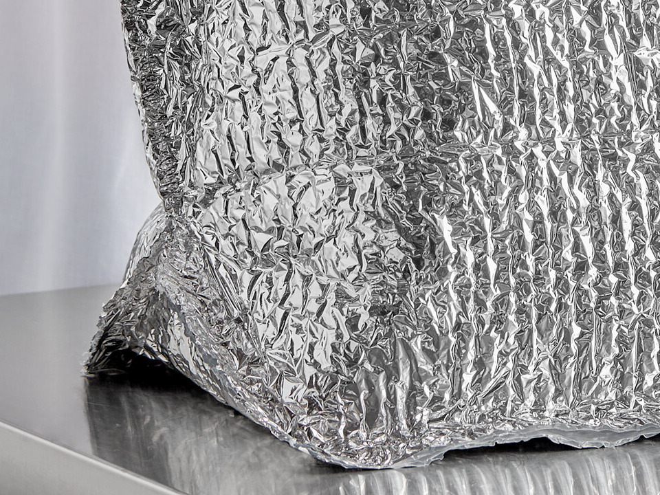 This liner's reflective foil outer material reflects sunlight to keep your product cool, while its 3/16" thickness protects your product from heat.