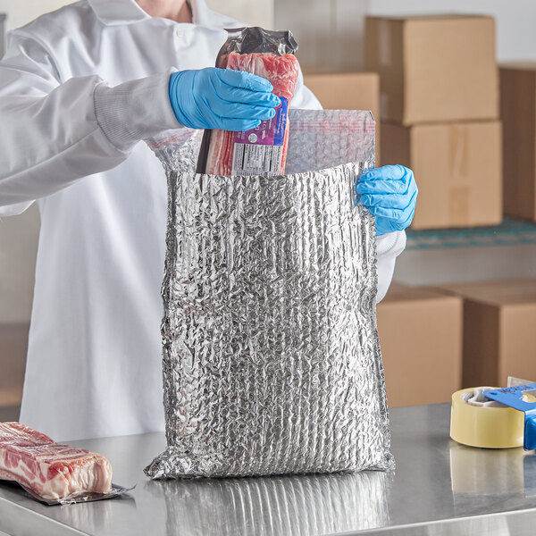 The reflective foil outer material of this mailer reflects sunlight away to keep your product cool, while its 3/16" thickness protects your product from heat. For sensitive food shipments, warm climates, and long ship times, cold packs are recommended to be used in addition to this liner.