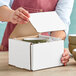 Safely ship your fragile items with this Lavex 4" x 4" x 3" white tuck top corrugated mailer. This mailer boasts a durable B-flute construction made from corrugated cardboard material, and it features triple-wall protection on its sides, as well as double-wall protection on the front. Plus, its 32 ECT (edge crush test) rating ensures that it will retain its shape while being transported with other cargo, making it perfect for shipping or moving fragile items.