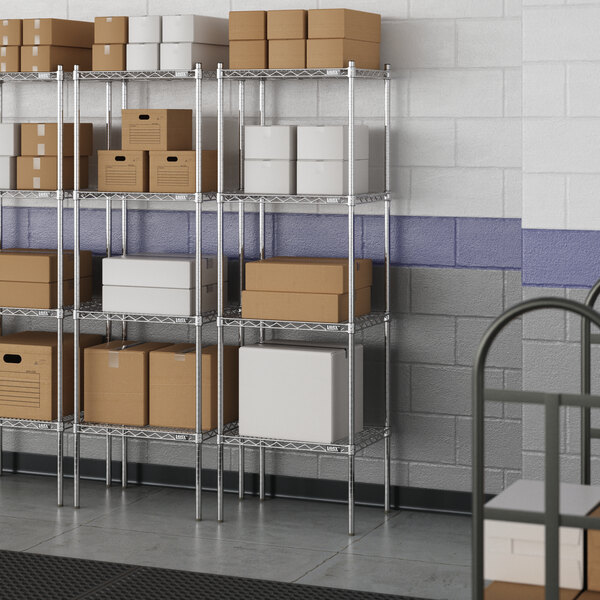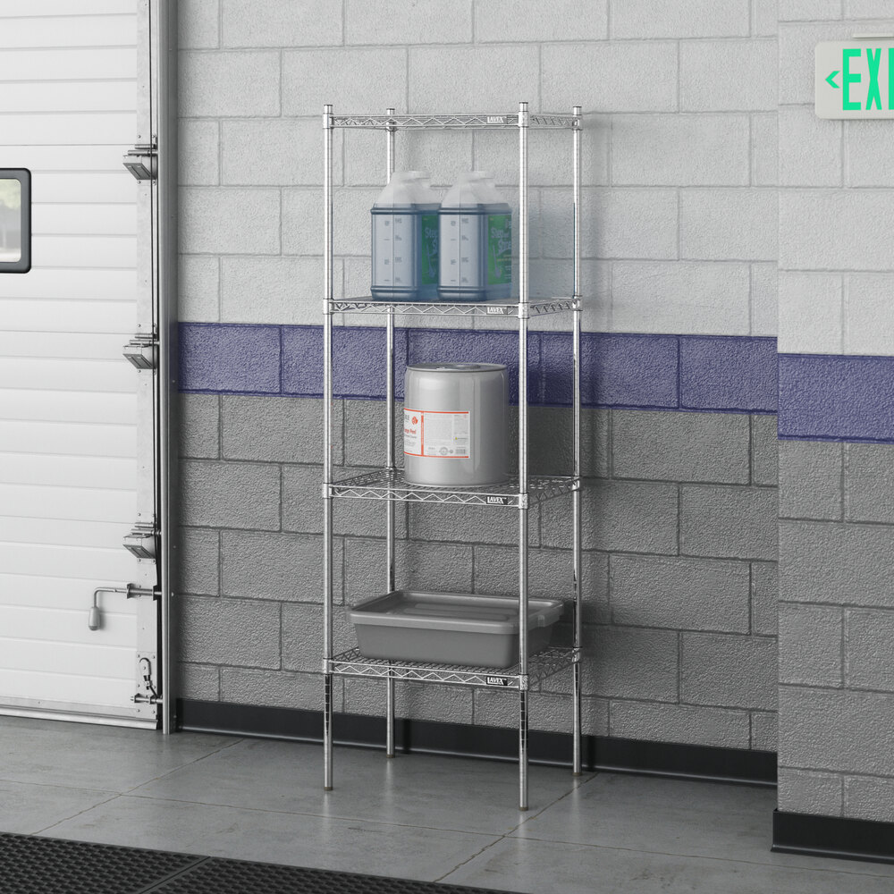 Designed for use in dry environments, this shelving unit is an excellent choice for organizing and maximizing storage space. Whether you're looking to streamline your warehouse operations or simply need additional storage in your industrial facility, this heavy-duty shelving kit is the perfect solution. Mix and match with Lavex Pro accessories (sold separately) to personalize your kit! Invest in the Lavex Pro chrome heavy-duty 4-shelf kit and experience the durability and functionality it brings to your workspace.