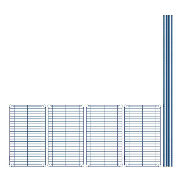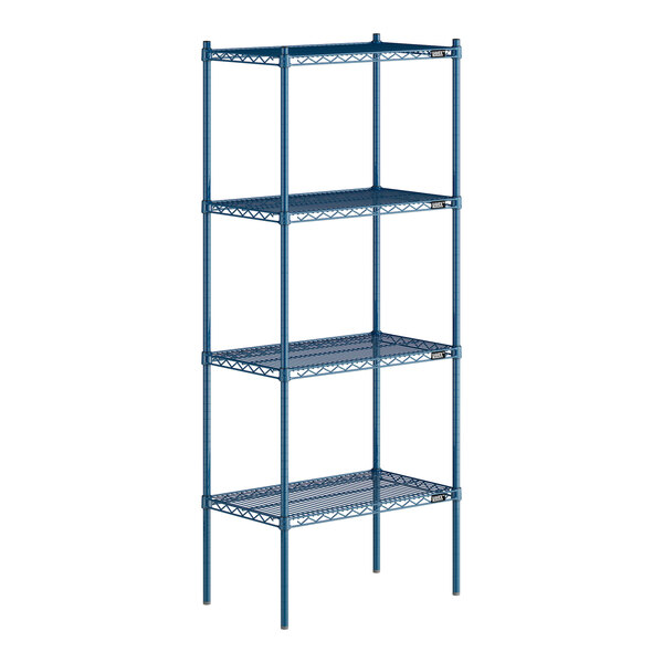 Lavex Pro 18" x 30" NSF Blue Epoxy Heavy-Duty 4-Shelf Kit with 74" Posts and Antimicrobial Coating
