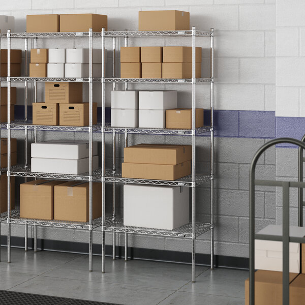 Designed for use in dry environments, this shelving unit is an excellent choice for organizing and maximizing storage space. Whether you're looking to streamline your warehouse operations or simply need additional storage in your industrial facility, this heavy-duty shelving kit is the perfect solution. Mix and match with Lavex Pro accessories (sold separately) to personalize your kit! Invest in the Lavex Pro chrome heavy-duty 5-shelf kit and experience the durability and functionality it brings to your workspace.