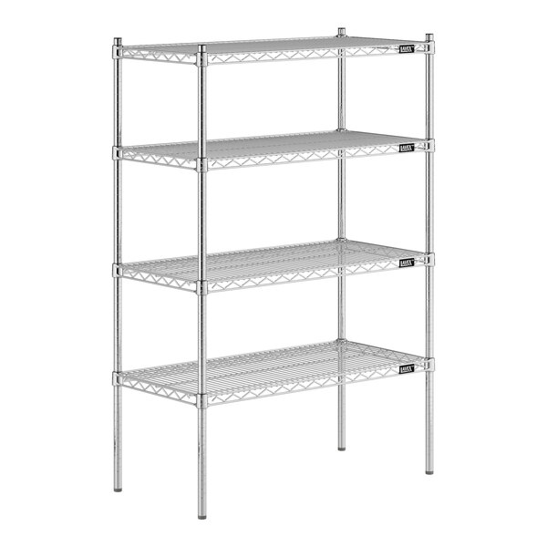 Designed for use in dry environments, this shelving unit is an excellent choice for organizing and maximizing storage space. Whether you're looking to streamline your warehouse operations or simply need additional storage in your industrial facility, this heavy-duty shelving kit is the perfect solution. Mix and match with Lavex Pro accessories (sold separately) to personalize your kit! Invest in the Lavex Pro chrome heavy-duty 4-shelf kit and experience the durability and functionality it brings to your workspace.