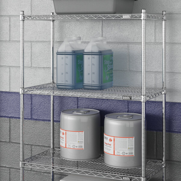 This shelf features a convenient design that maximizes airflow between and around products. Whether you need to store tools, equipment, or supplies, it's an ideal storage solution for warehouses and industrial settings. Together with Lavex Pro chrome heavy-duty posts, additional shelves, and accessories (all sold separately) of your choosing, you can use this shelf to create a customized storage solution to best meet your facility's needs and space.