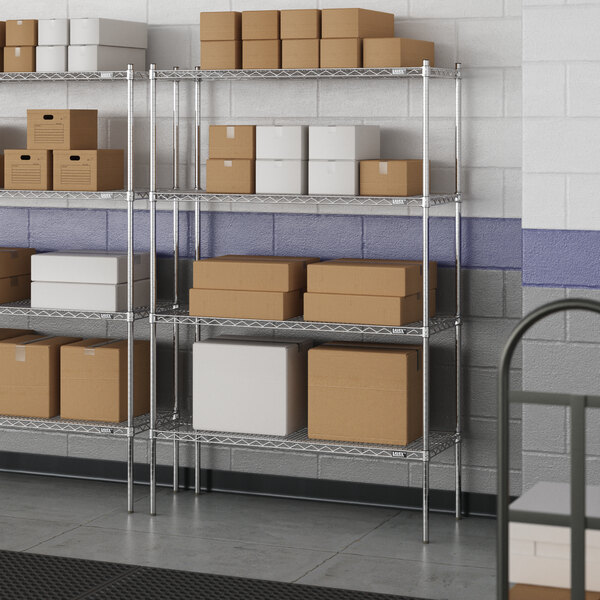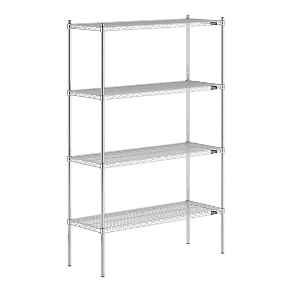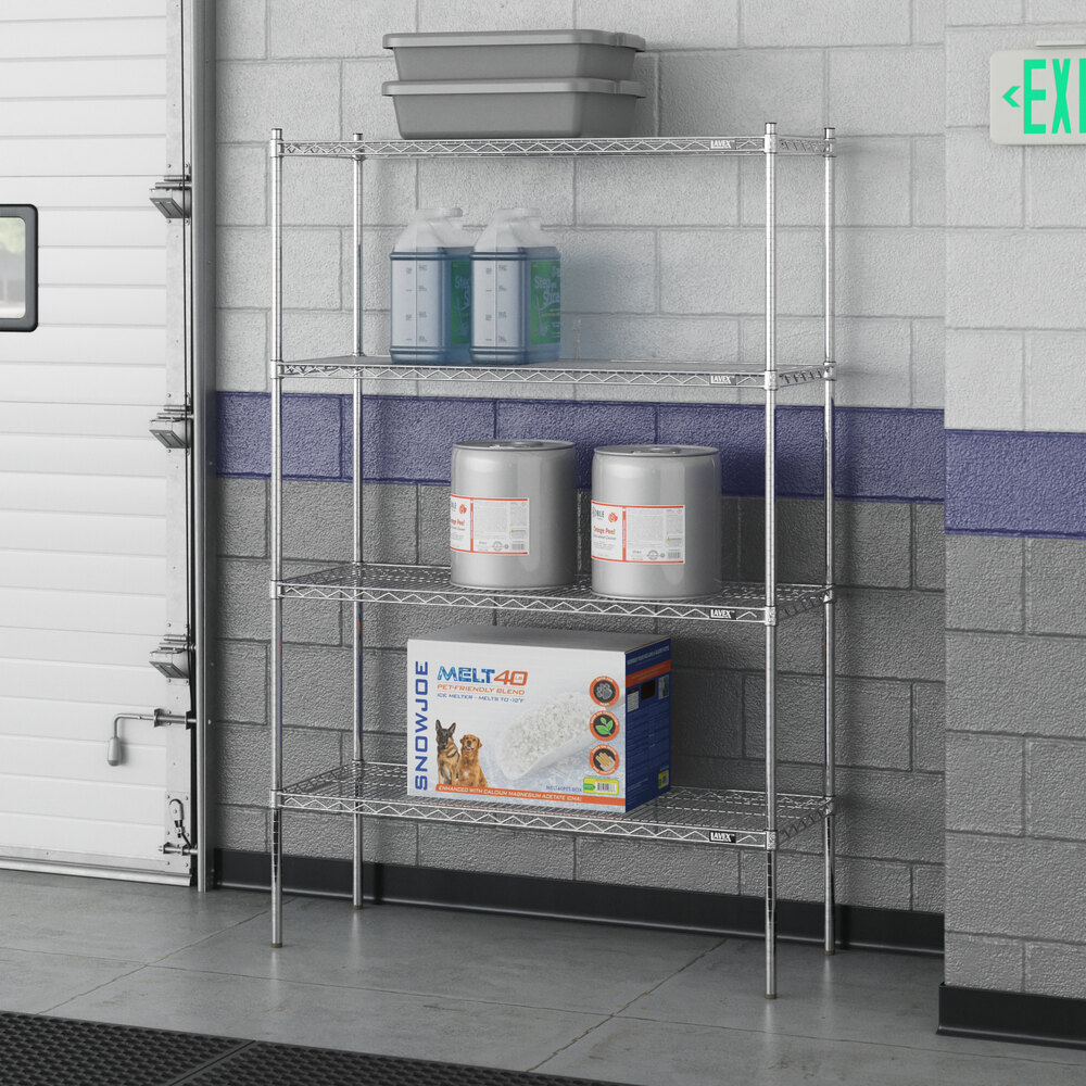 Designed for use in dry environments, this shelving unit is an excellent choice for organizing and maximizing storage space. Whether you're looking to streamline your warehouse operations or simply need additional storage in your industrial facility, this heavy-duty shelving kit is the perfect solution. Mix and match with Lavex Pro accessories (sold separately) to personalize your kit! Invest in the Lavex Pro chrome heavy-duty 4-shelf kit and experience the durability and functionality it brings to your workspace.