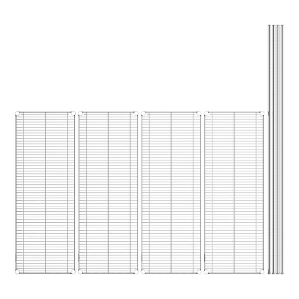 This kit includes (4) 74" posts, (4) 18" x 48" shelves, and 16 pairs of split sleeves. Made of durable, heavy-duty, reinforced chrome-plated steel, this unit is built to last. The chrome plating not only gives it a sleek and professional appearance, but it also makes it resistant to rust and corrosion, ensuring that it will maintain its quality even in demanding environments. The shelving unit requires assembly.