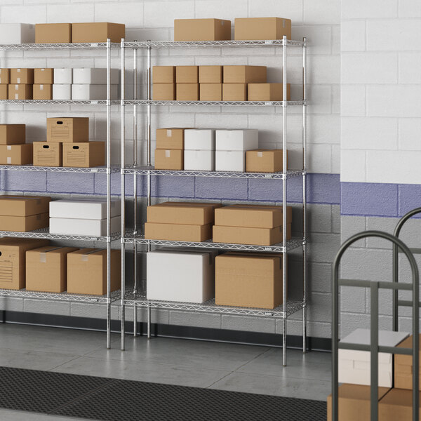 Designed for use in dry environments, this shelving unit is an excellent choice for organizing and maximizing storage space. Whether you're looking to streamline your warehouse operations or simply need additional storage in your industrial facility, this heavy-duty shelving kit is the perfect solution. Mix and match with Lavex Pro accessories (sold separately) to personalize your kit! Invest in the Lavex Pro chrome heavy-duty 5-shelf kit and experience the durability and functionality it brings to your workspace.