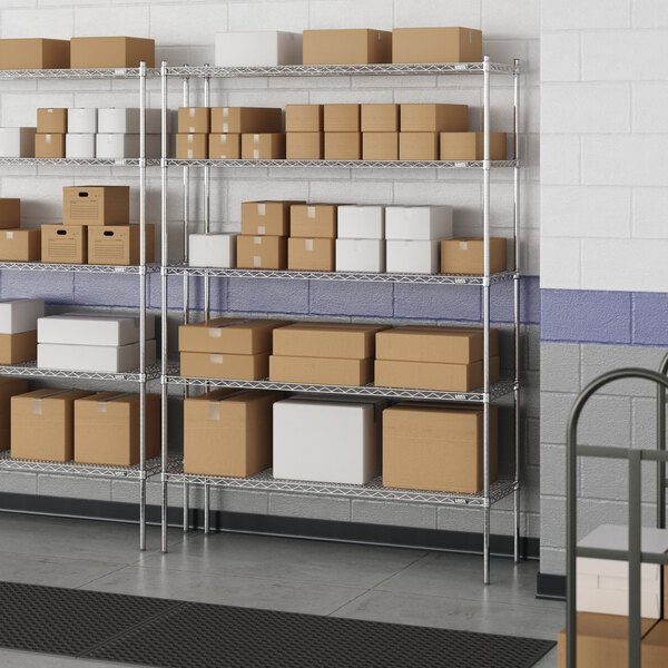 Designed for use in dry environments, this shelving unit is an excellent choice for organizing and maximizing storage space. Whether you're looking to streamline your warehouse operations or simply need additional storage in your industrial facility, this heavy-duty shelving kit is the perfect solution. Mix and match with Lavex Pro accessories (sold separately) to personalize your kit! Invest in the Lavex Pro chrome heavy-duty 5-shelf kit and experience the durability and functionality it brings to your workspace.