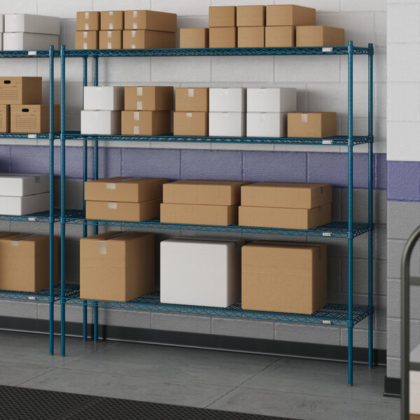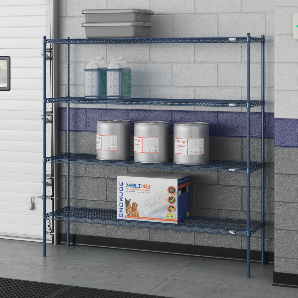 Designed for use in moist or damp environments, this shelving unit is an excellent choice for organizing and maximizing storage space. Whether you're looking to streamline your warehouse operations or simply need additional storage in your industrial facility, this heavy-duty shelving kit is the perfect solution. Mix and match with Lavex Pro accessories (sold separately) to personalize your kit! Invest in the Lavex Pro blue epoxy heavy-duty 4-shelf kit and experience the durability and functionality it brings to your workspace.