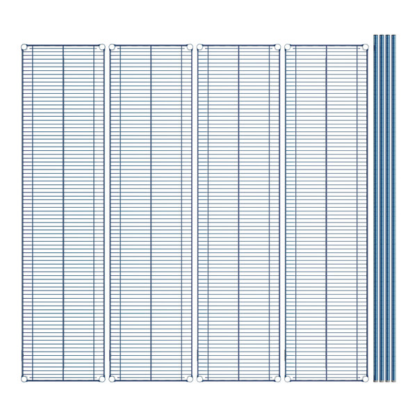 This kit includes (4) 74" posts, (4) 18" x 72" shelves, and 16 pairs of split sleeves. Made of durable, heavy-duty, reinforced, blue epoxy-coated steel, this unit is built to last. The epoxy coating is antimicrobial, protecting it from bacteria, mold, mildew, and fungi. It's also resistant to rust and corrosion, ensuring that it will maintain its quality even in demanding environments. This unit requires assembly.