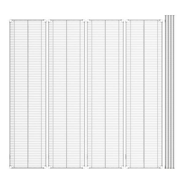 This kit includes (4) 74" posts, (4) 18" x 72" shelves, and 16 pairs of split sleeves. Made of durable, heavy-duty, reinforced chrome-plated steel, this unit is built to last. The chrome plating not only gives it a sleek and professional appearance, but it also makes it resistant to rust and corrosion, ensuring that it will maintain its quality even in demanding environments. The shelving unit requires assembly.