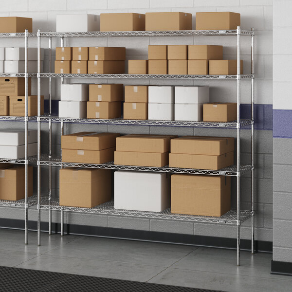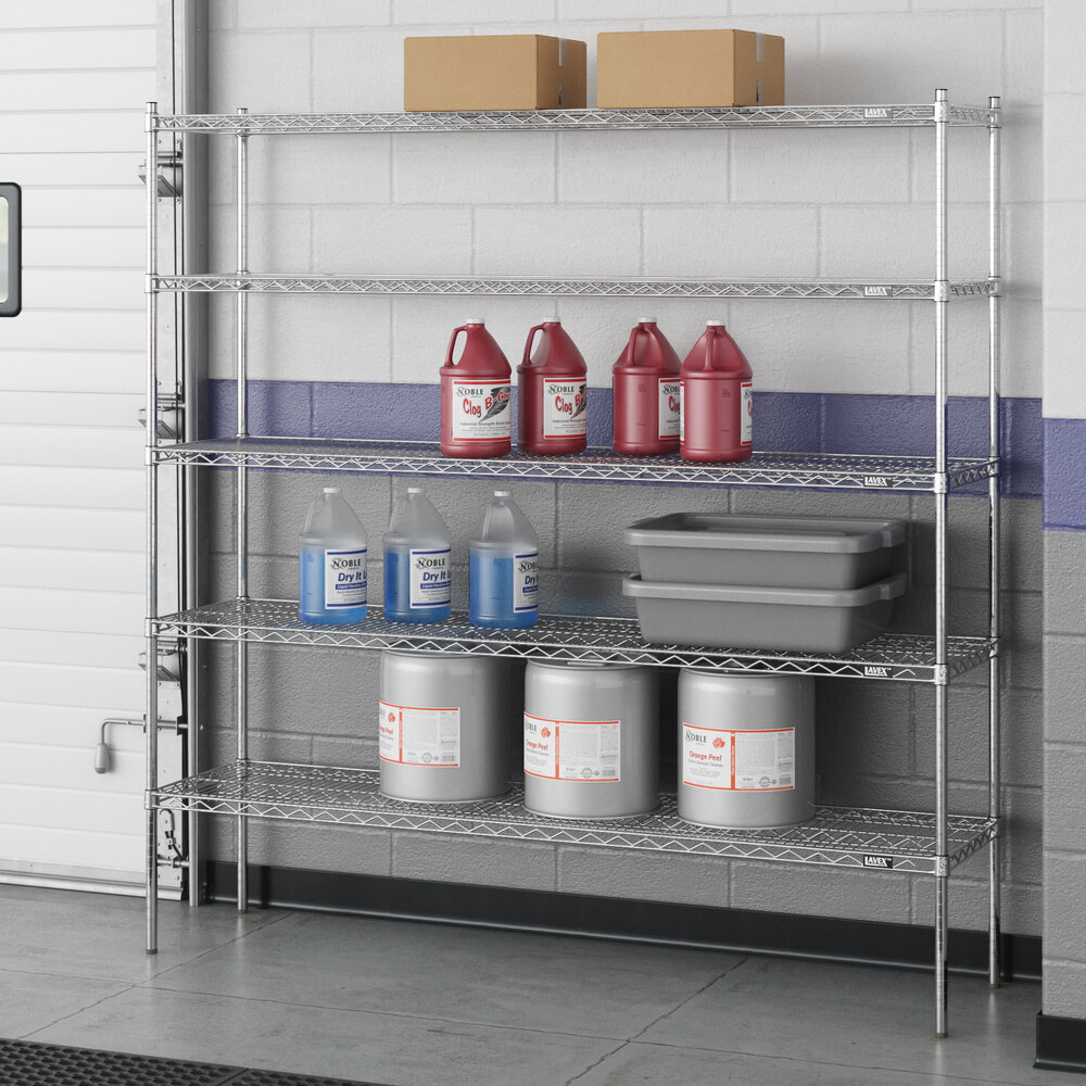 Designed for use in dry environments, this shelving unit is an excellent choice for organizing and maximizing storage space. Whether you're looking to streamline your warehouse operations or simply need additional storage in your industrial facility, this heavy-duty shelving kit is the perfect solution. Mix and match with Lavex Pro accessories (sold separately) to personalize your kit! Invest in the Lavex Pro chrome heavy-duty 5-shelf kit and experience the durability and functionality it brings to your workspace.
