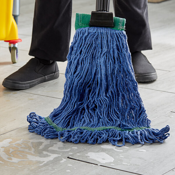 Maintain sparkling clean floors with this Lavex Pro 24 oz. #32 blue rayon blend looped end wet mop head with 5" headband!