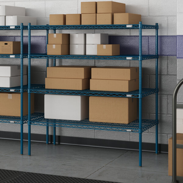 Upgrade your storage capabilities with the Lavex Pro blue epoxy heavy-duty 4-shelf kit!