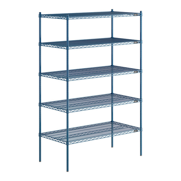 Lavex Pro 24" x 48" NSF Blue Epoxy Heavy-Duty 5-Shelf Kit with 74" Posts and Antimicrobial Coating